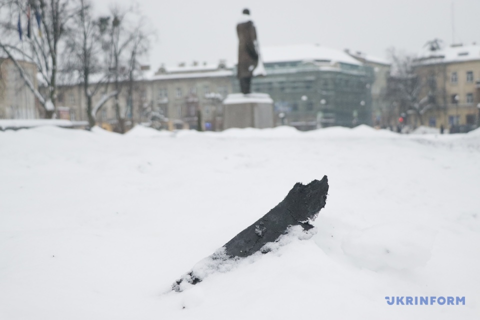 À Lviv, les services d’urgence éliminent les conséquences de l’impact d’un drone russe / Photo : Igior Fedyk, Ukrinform