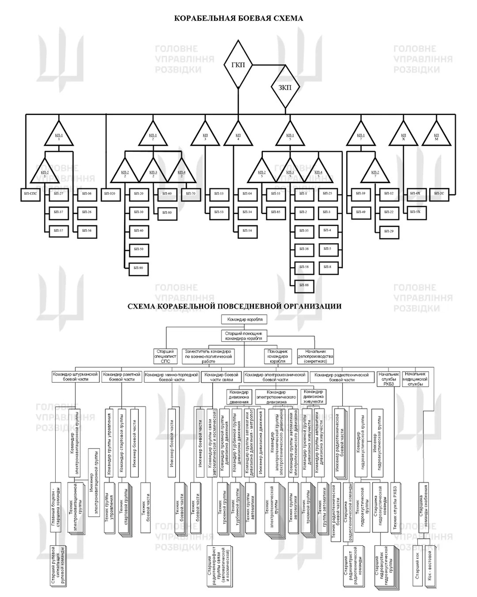 - le schéma de combat du navire, les schémas des systèmes de survie et de la structure organisationnelle de l’équipage ;