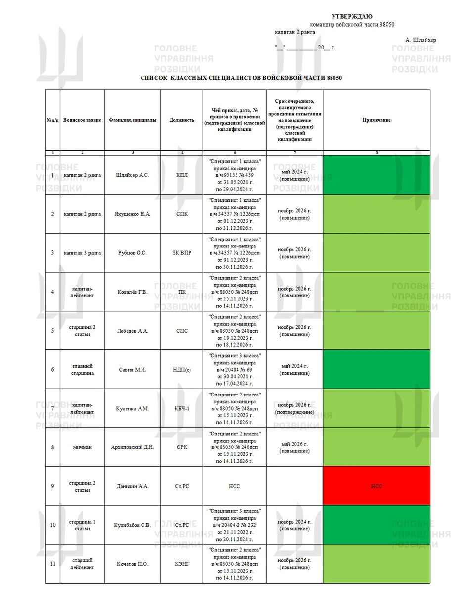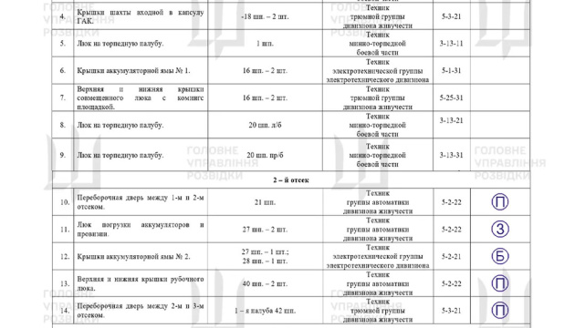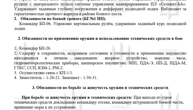 - des listes nominatives de l’équipage du sous-marin, incluant des données sur les postes, les qualifications et le niveau de préparation physique ;
