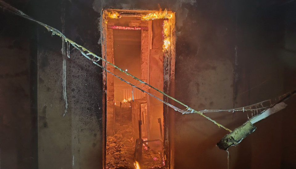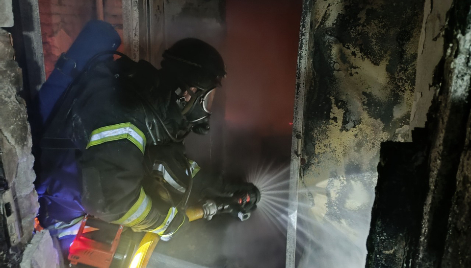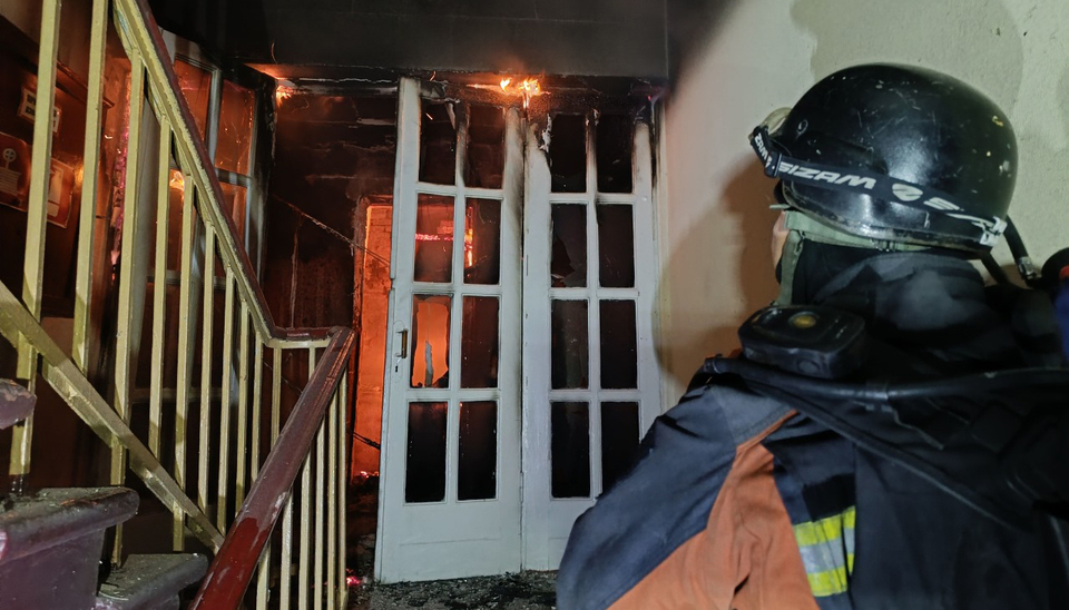 À Zaporijjia les sauveteurs ont éteint des incendies causés par une attaque nocturne de drones russes.