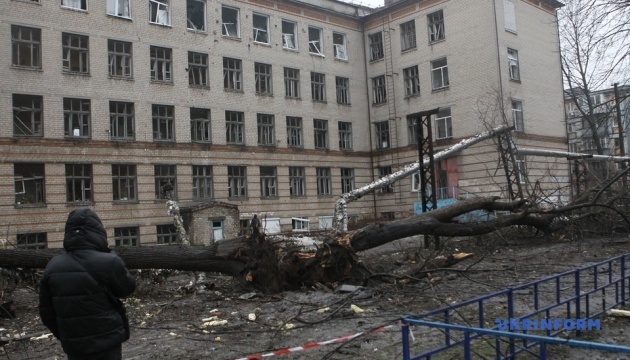 Un établissement d’enseignement professionnel a également été touché : un atelier et un dortoir étudiant ont été endommagés. L’incendie qui s’y était déclaré a été éteint. Deux jardins d’enfants et une école ont par ailleurs été affectés.