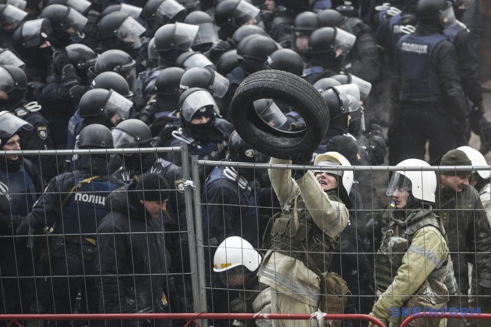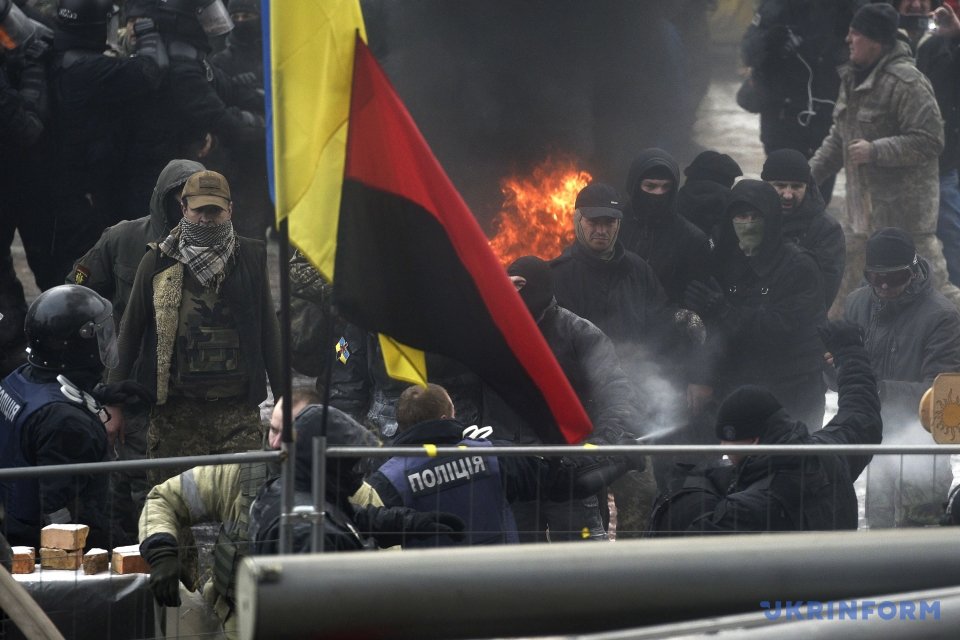 Les activistes ont déclaré qu’ils voulaient brûler un drapeau russe pour exprimer leur protestation contre «une trahison massive des politiciens ukrainiens qui servent les intérêts des député dépendants de la Russie».