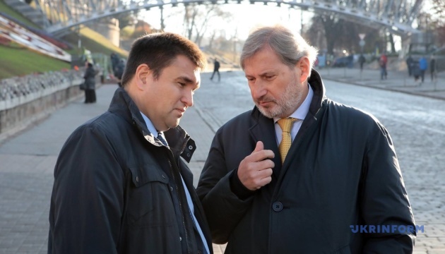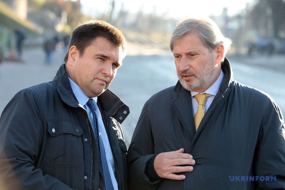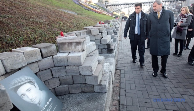 Johannes Hahn, commissaire de l'Union européenne pour la Politique régionale et de l'intégration européenne et Pavlo Klimkine, ministre des Affaires étrangères de l’Ukraine, ont déposé des fleurs au monument de la Centurie Céleste à Kyiv.