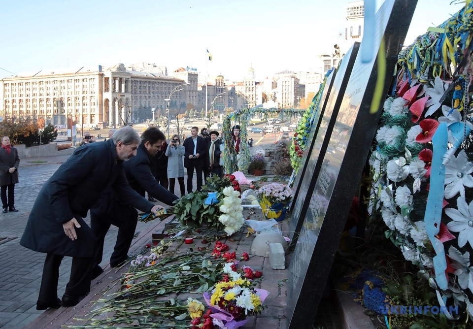 Johannes Hahn et Pavlo Klimkine ont déposé des fleurs au monument de la Centurie Céleste à Kyiv (photos)