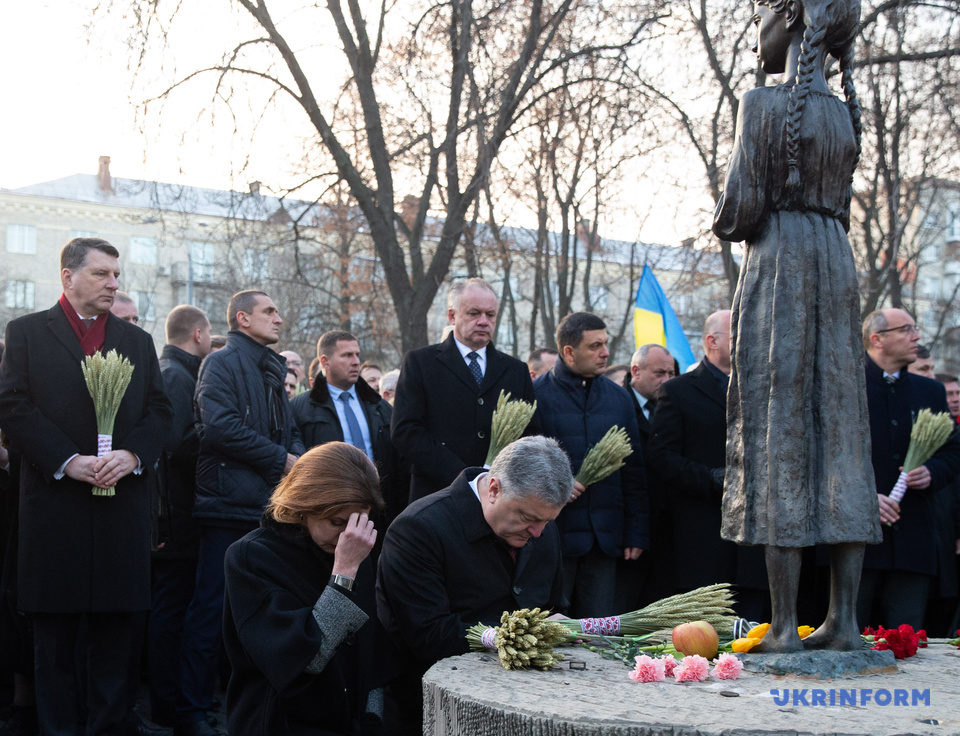 À Kyiv, Petro Porochenko, président de l’Ukraine, des membres du gouvernement, des députés ukrainiens et le clergé ont déposé des fleurs et des épis de blé au pied du monument commémoratif dédié aux victimes du Holodomor de 1932-1933 en Ukraine. Raimonds Vējoni, président de la République de Lettonie, Andrej Kiska, président de la République slovaque et des représentants des délégations étrangères de haut niveau ont assisté à cet événement.