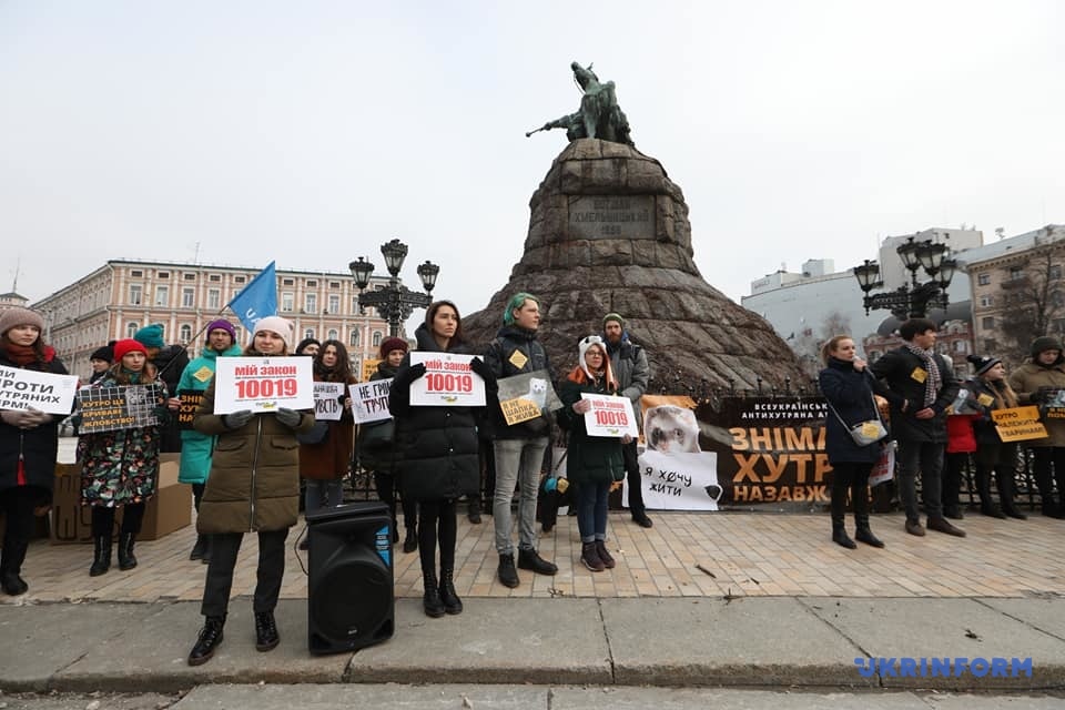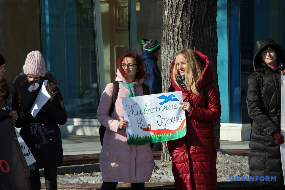 «Nous avons déposé à la Verkhovna Rada le projet de loi n°10019 qui interdit la production de fourrure et, l'action d'aujourd'hui est un appel à la population ukrainienne afin qu’elle cesse de porter de la fourrure, dʼarrêter dʼacheter des produits issus de la cruauté animale, de laisser la fourrure aux animaux, eux qui en ont tant besoin», explique Pavlo Vychybaba, représentant de lʼONG «Planète unie».