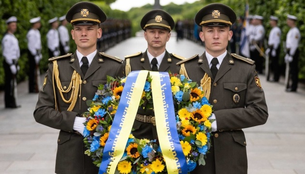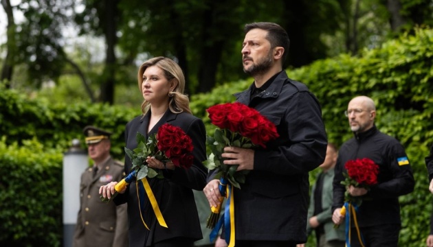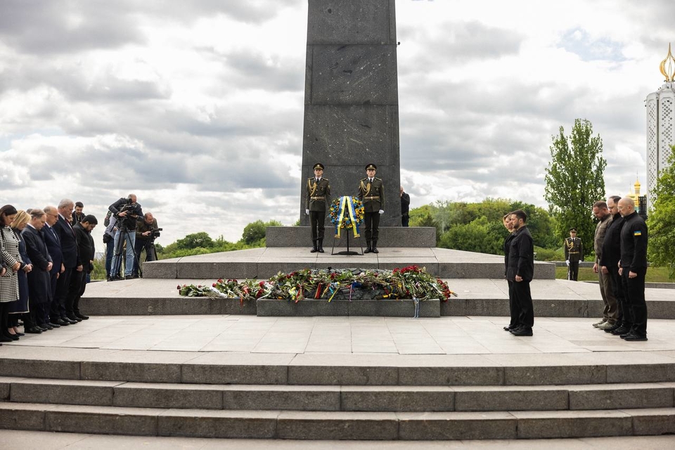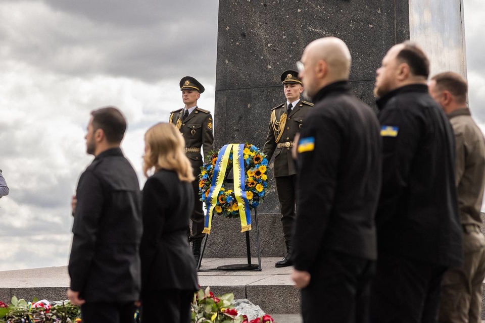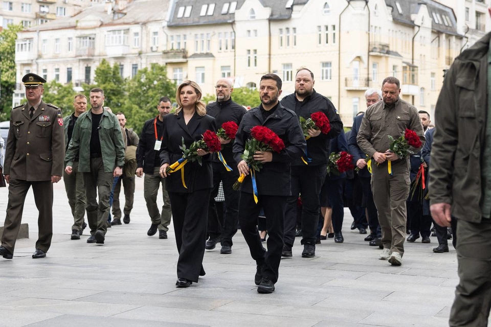Selon la présidence ukrainienne, Volodymyr et Olena Zelenska ont déposé des fleurs sur la tombe du Soldat inconnu à Kyiv, en présence du président de la Verkhovna Rada de l’Ukraine, Rouslan Stefantchouk, le Premier ministre, Denys Chmyhal, le chef du Cabinet du président de l’Ukraine, Andriy Yermak, le ministre ukrainien des Affaires étrangères, Andriy Sybiha et des représentants des missions diplomatiques en Ukraine.