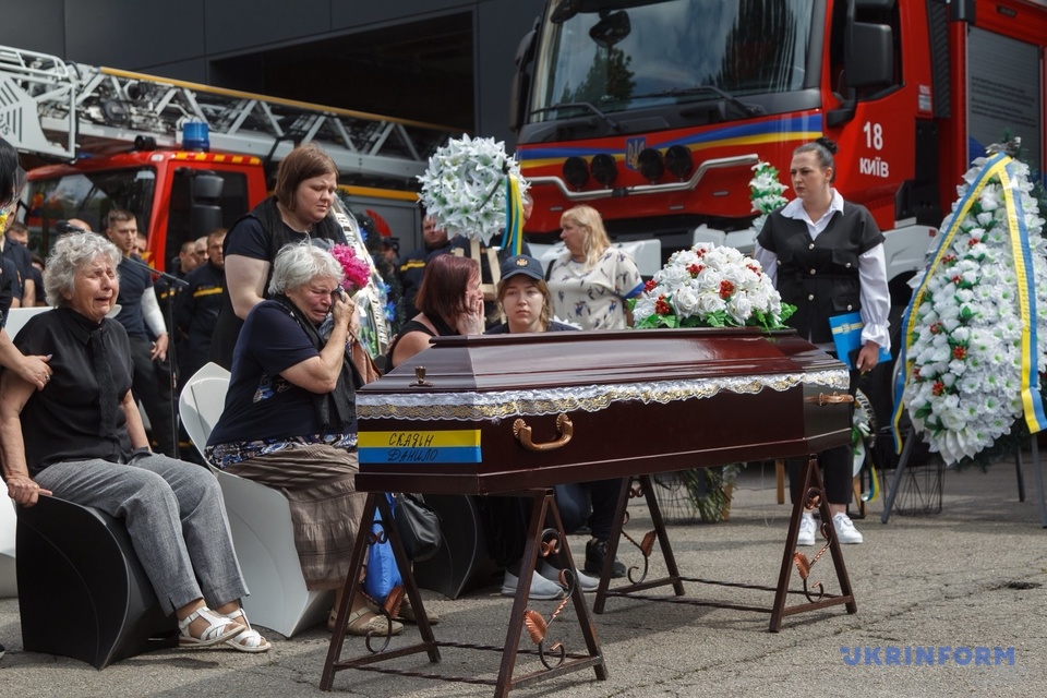 « Une cérémonie d’adieu s’est déroulée à Kyiv en hommage à trois secouristes — Pavlo Yezhor, Danylo Skadin et Andriy Reminnyi. Ils ont perdu la vie le 6 juin alors qu’ils intervenaient pour secourir des civils après une nouvelle attaque barbare de la Russie dans le district de Solomianskyï, dans la capitale », a indiqué le service de presse.
