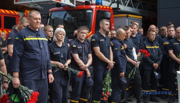 À Kyiv, cérémonie d’adieu à trois secouristes tués lors de l’attaque russe du 6 juin