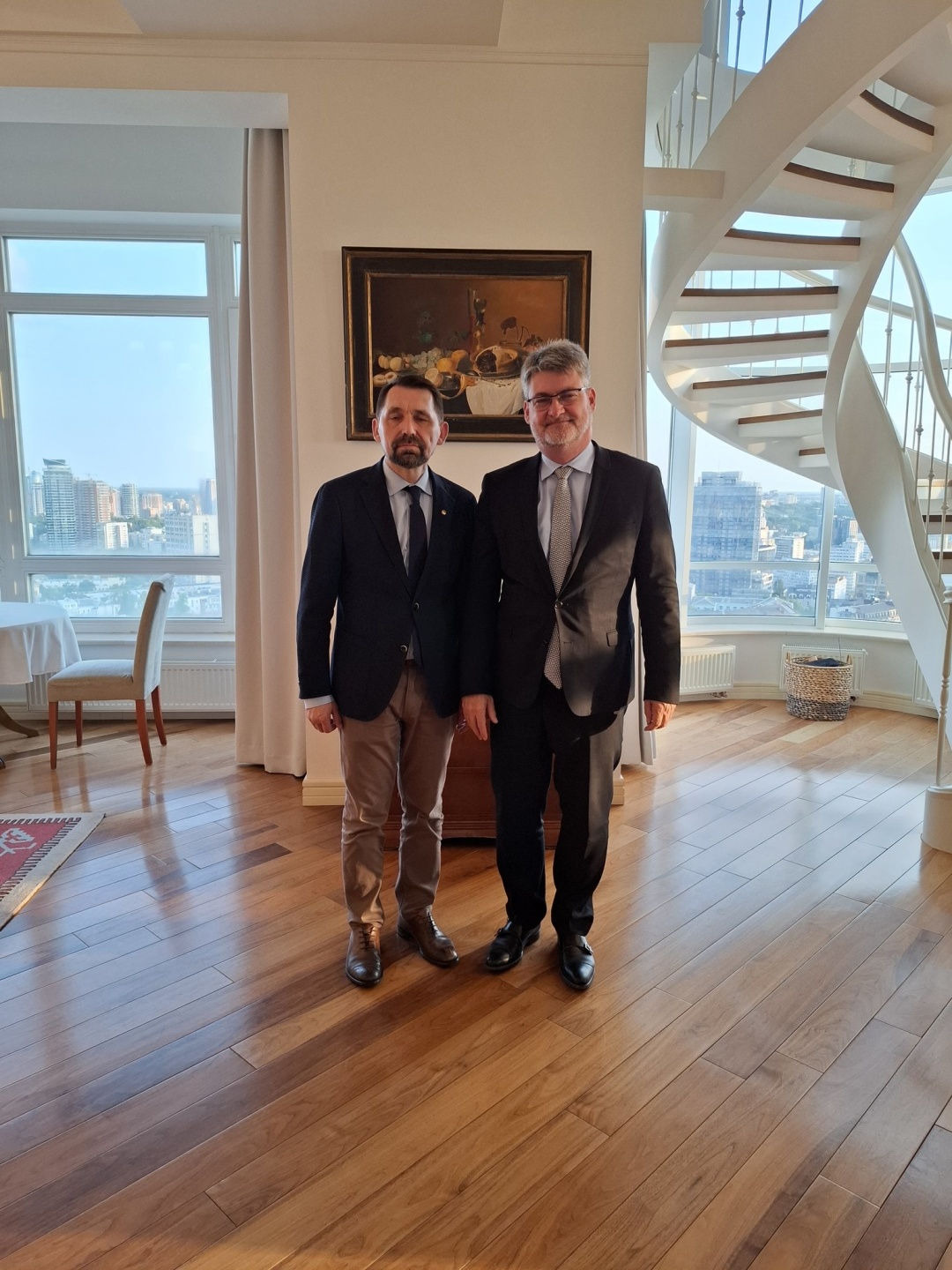 « Les frappes russes contre Kyiv et Odessa la nuit dernière ont été dévastatrices. Mais la vie continue, tout comme la résistance de l’Ukraine. À la cathédrale Sainte-Sophie, où des dommages ont été constatés, nous avons discuté hier soir avec le ministre Mykola Tochytskyi de la préservation de ce joyau du XIe siècle », a écrit Gaël Veyssière sur le réseau social X.