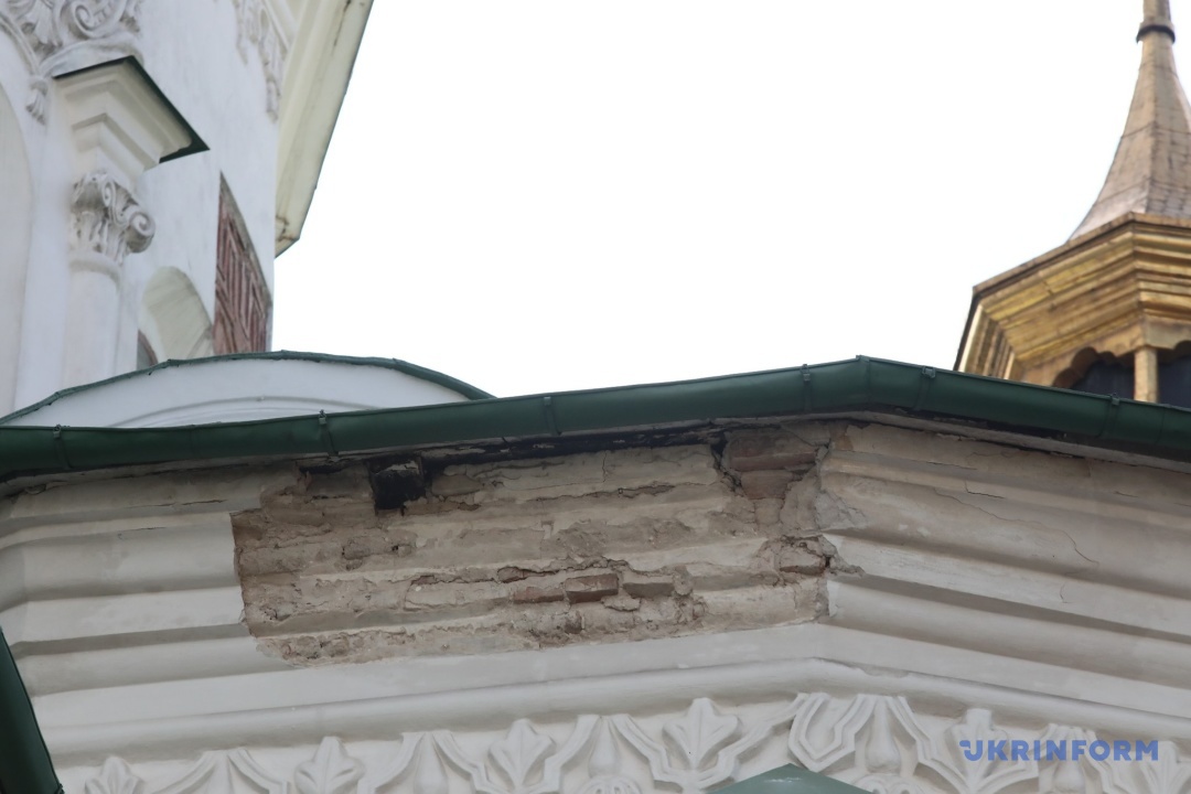 Dans la nuit du 10 juin, une attaque massive contre Kyiv a causé des dégâts à la cathédrale Sainte-Sophie, un monument unique du XIe siècle inscrit au patrimoine mondial de l’UNESCO. L’onde de choc a endommagé la corniche en plâtre de l’abside centrale sur la façade est.