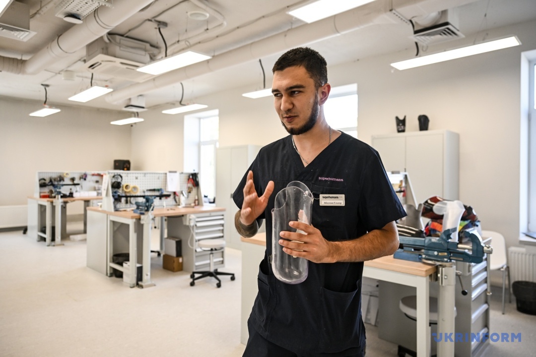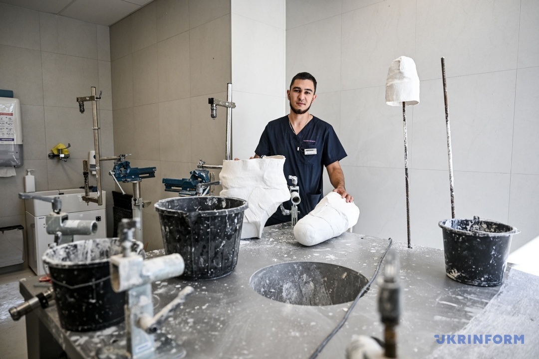 Dans le couloir nous rencontrons un prothésiste : Elyoor Abdouloyev, 28 ans. Il est originaire de Severodonetsk, dans l'oblast de Louhansk. Cuisinier et technologue de formation, Elyoor est un vétéran, il connaît bien les prothèses et sait ce qui est important de par sa propre expérience, puisqu'il marche lui-même avec une prothèse.