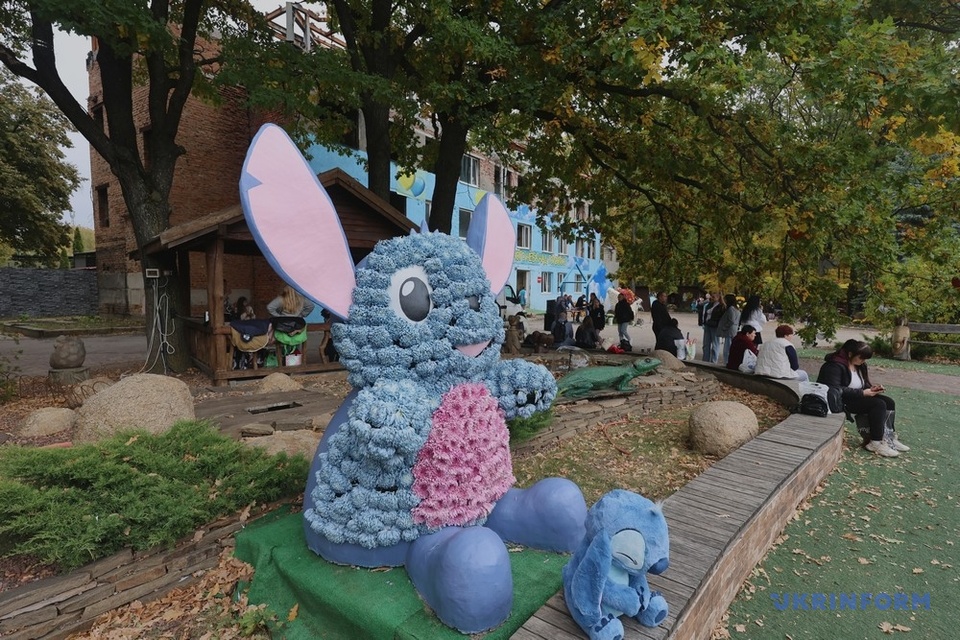 « Cette année, nous présentons plus de 10 000 fleurs, en pot ou coupées. Dix compositions florales ont été réalisées, dont deux nouveautés : un smiley géant installé à l’entrée et Stitch, le personnage de dessin animé », a expliqué la porte-parole du parc, Olena Klymenko.