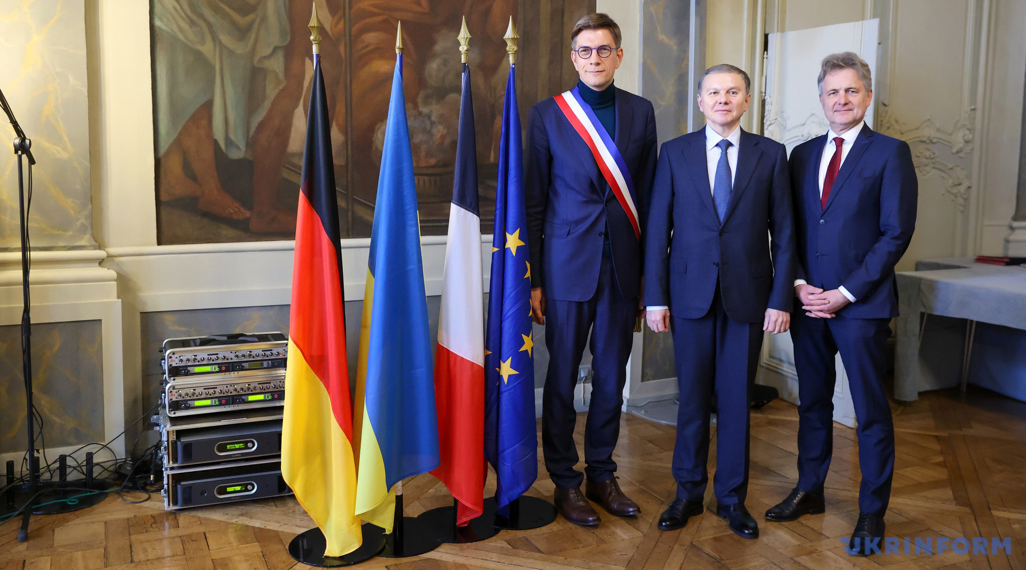 Dès les premiers jours de l’invasion, Nancy a ouvert ses portes aux premiers réfugiés ukrainiens. Aujourd’hui, ils sont près d’un millier. Entre-temps, Nancy a conclu un jumelage avec Vinnytsia, et le maire Klein prononce sans accent « Dyakouyu» (Merci- ndlr) et « Slava Ukraine! » (Gloire à l’Ukraine) tout en effectuant régulièrement des voyages en Ukraine et en planifiant une coopération future. La correspondante d’Ukrinform a rencontré le maire dans son bureau donnant sur la place Stanislas, au centre de laquelle trône la statue du dernier duc de Lorraine. Stanislas est le symbole de cette partie de la France. Désormais, chaque année, ce symbole est drapé du drapeau ukrainien.