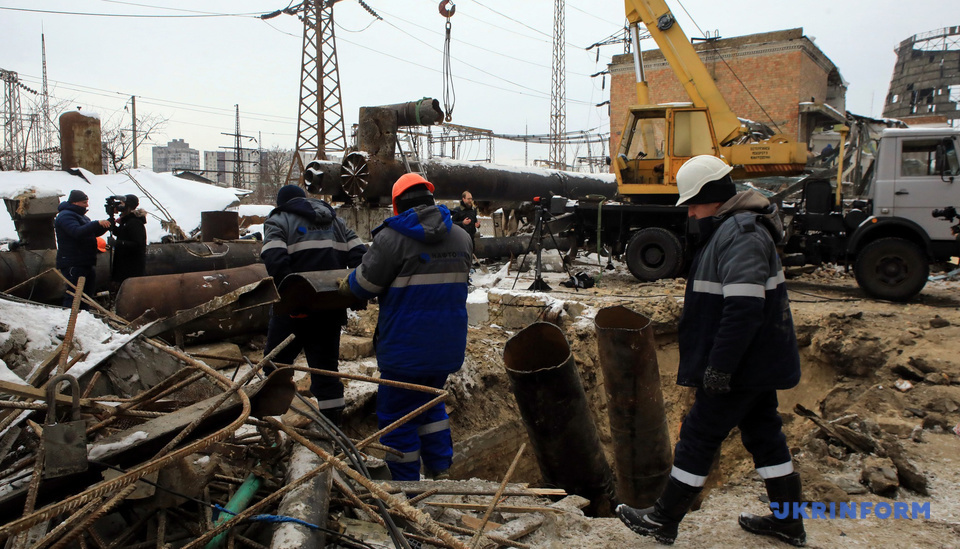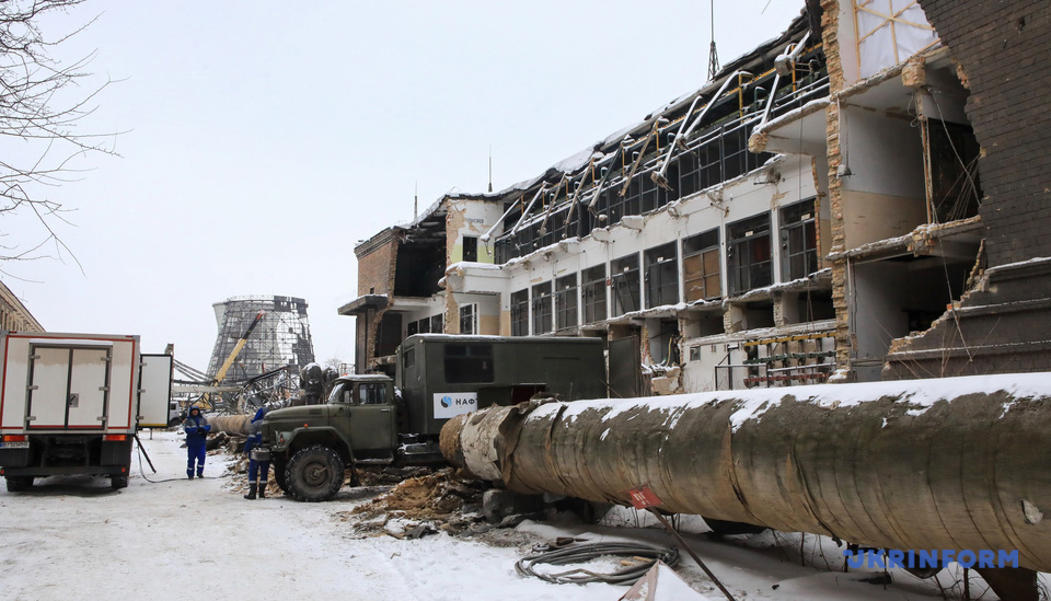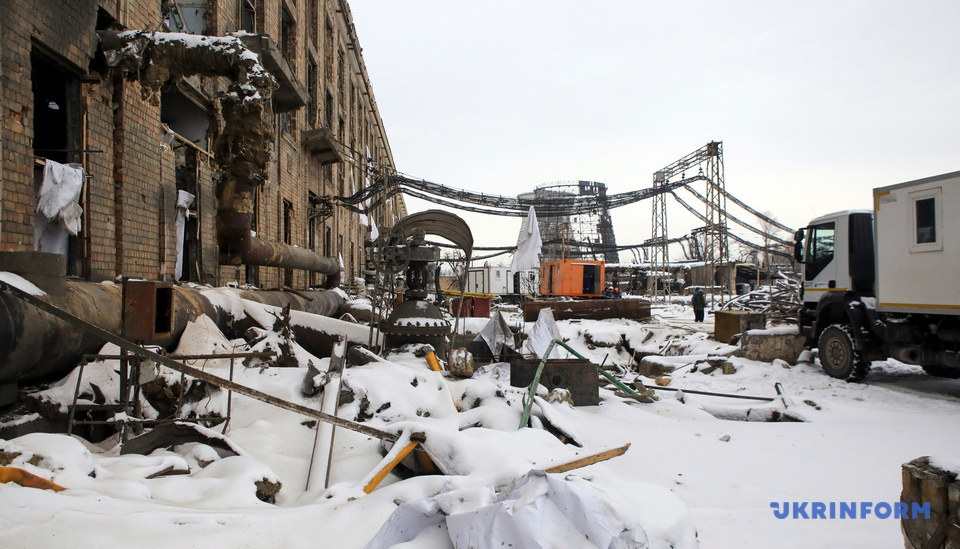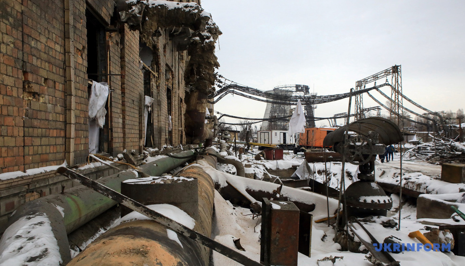 Travaux de restauration lancés à la centrale thermique de Darnytsia, touchée par frappe russe sur Kyiv